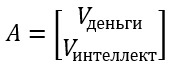 Для количественной оценки метаболизма стартапа автором предлагается задать два вектора – деньги и интеллект, которые образуют квадратную матрицу. Определитель матрицы будет служить показателем метаболизма. Такой подход к отображению рассматриваемого индикатора проанализирован в статье В.А. Клементьева применительно к визуализации многофакторных показателей. [6]